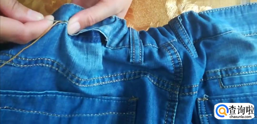 最后将拆开的裤腰明线给缝上就可以了。