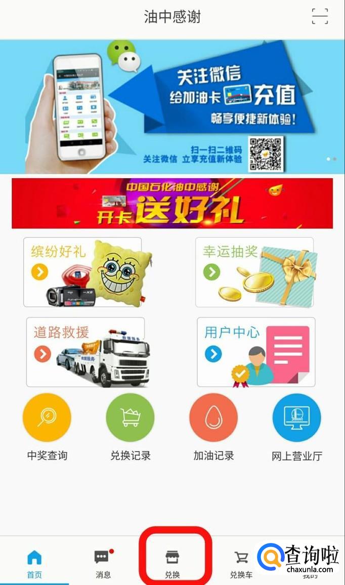 下载“油中感谢”app,进入app后点击兑换按钮,会看到许多可以兑换的礼品,然后根据自己的积分情况选择就可以啦。