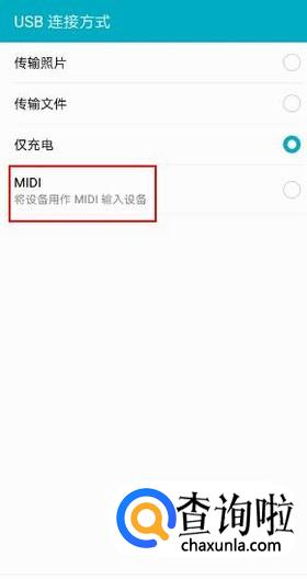 在手机中将USB连接方式更改为MIDI。一般来说这样做以后,手机驱动会自动安装到电脑设备中,当然有事也会因为系统原因而安装失败。