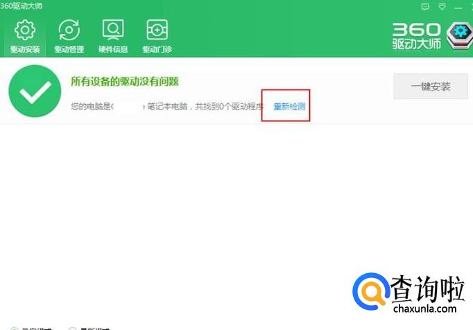 如果手机驱动没有安装成功的话,双击打开360驱动,点击一键检测或者重新检测。