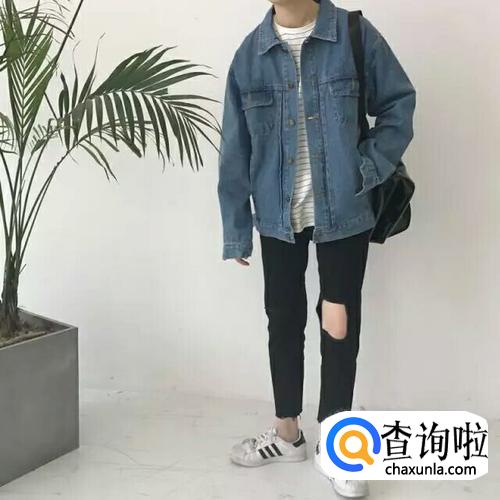 牛仔外套+灰色T恤