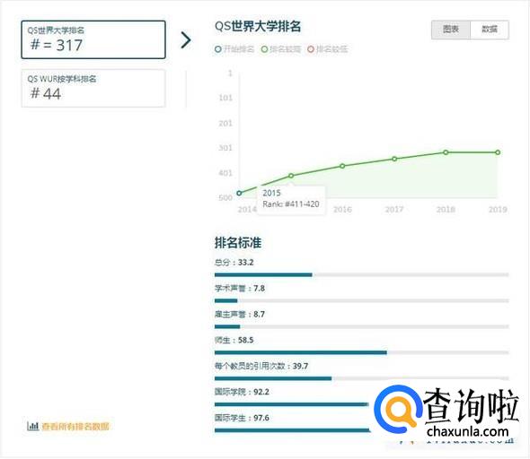 注:QS世界大学排名是世界公认最具影响力的全球性大学排名之一,主要评价指标为:学术领域的同行评价(40%)、全球雇主评价(10%)、单位教职的论文引用数(20%)、教师/学生比例(20%)、国际学生比例(5%)、国际教师比例(5%)