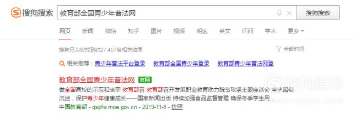 打开搜索,输入“教育部全国青少年普法网”,点击搜索。