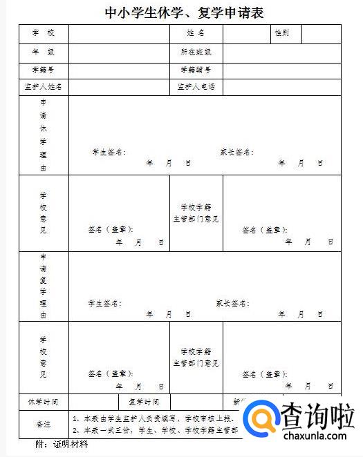 在学校领取统一的休学申请表。在告诉学校领导后,学校会给家长三份学生休学申请表,家长按照要求内容认真填写,也可以让学校老师代替填写。
