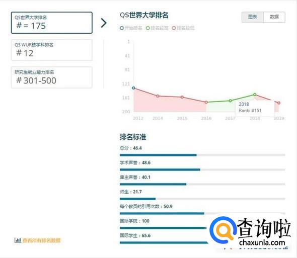 注:QS世界大学排名是世界公认最具影响力的全球性大学排名之一,主要评价指标为:学术领域的同行评价(40%)、全球雇主评价(10%)、单位教职的论文引用数(20%)、教师/学生比例(20%)、国际学生比例(5%)、国际教师比例(5%)