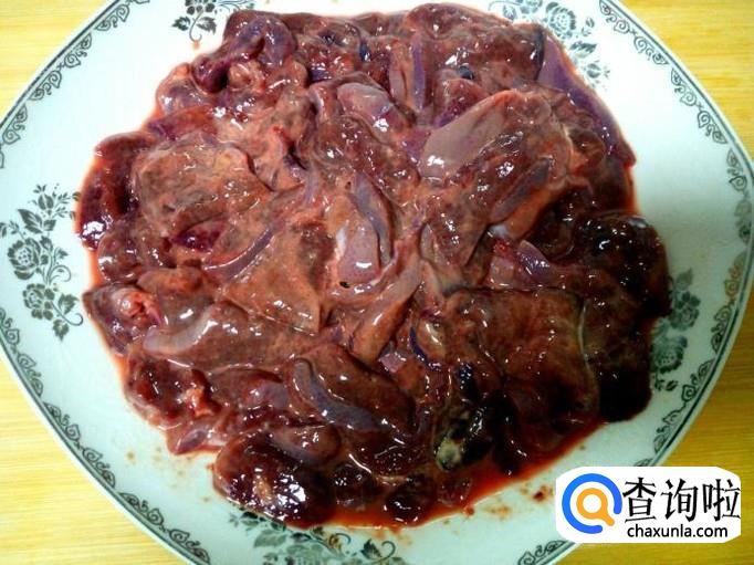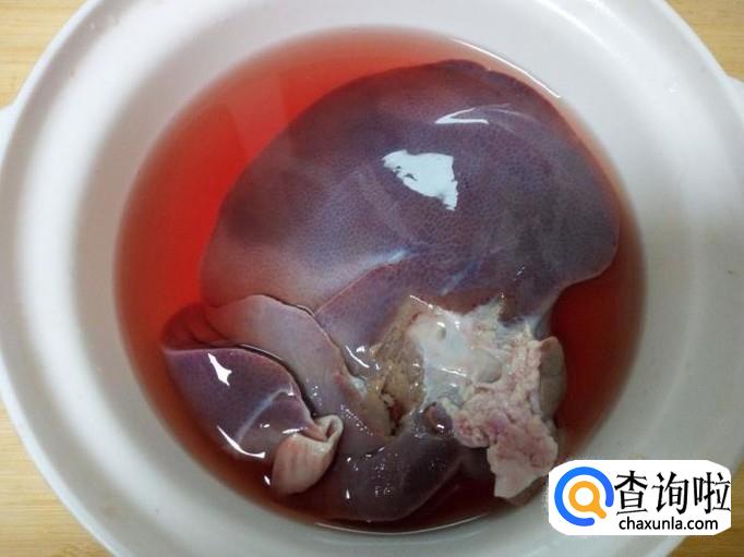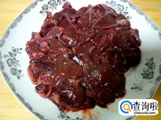 猪肝放入水中浸泡两个小时,去除血水。然后用水清洗干净,控干水分,切成片。