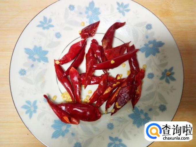 猪肝 400克,麻辣青椒 2个,红干椒 8个。
