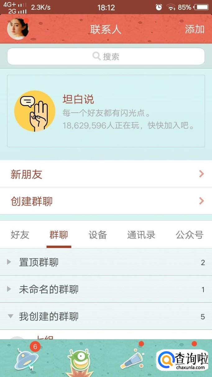然后,点击下方的第二个图标,也就是好友。
