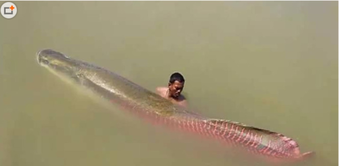 巨骨舌鱼是巨骨舌鱼属(Arapaima)下的唯一一个物种,也称海象、象鱼、大头巨骨舌鱼,主要分布在南美洲的亚马逊河里,被认为是活化石。成熟的巨骨舌鱼长度可超过2.5米,重达100公斤(迄今捕获的巨骨舌鱼最重达230公斤),是世界上大型的淡水鱼之一。巨骨舌鱼具有强大的蛮力,利用尾巴作为武器,可以轻易击倒成年的男性,并击碎骨骼造成大量内伤,所以再发现这种巨鱼,千万要小心。