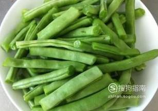 将豆角洗净后两端去头,折成两段备用,顺便切一些辣椒段,扒一些大蒜出来。