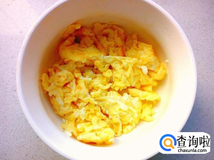 先用锅把鸡蛋炒出来,炒至七分熟,盛出备用。