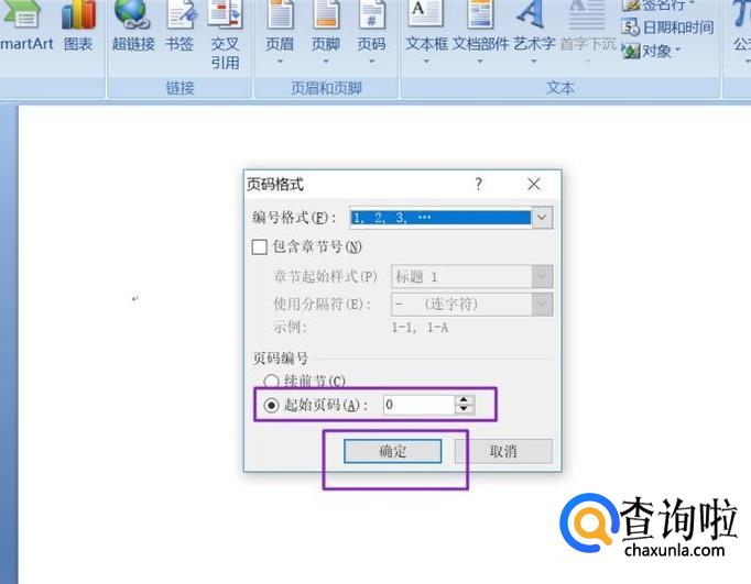 将起始页码设置为0,点击确定,这样就可以使封面不显示页码了。