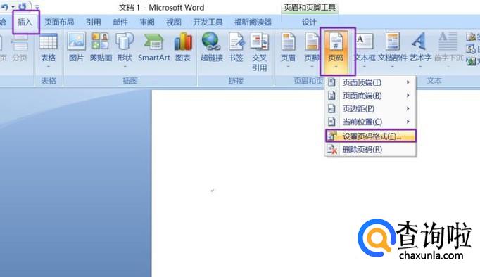 然后我们继续点击插入,点击页码的下拉箭头,选择设置页码格式;