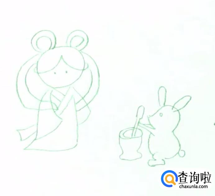 然后我们画出常伴嫦娥身边的玉兔以及玉兔经常使用的罐子。