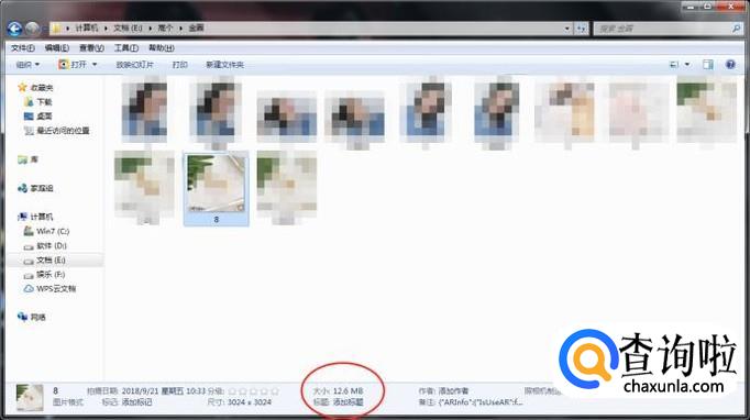随机找的一张图片,可以看到这张原照片的内存是12.6M,现在圈出来的待会跟后面压缩好的图片做对比。