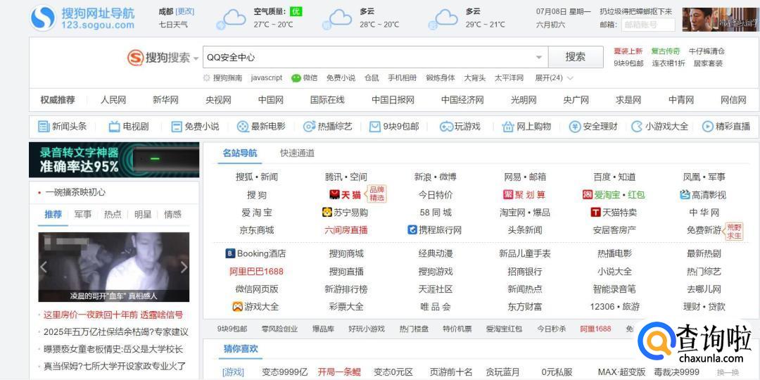 打开搜狗浏览器,在搜索栏中输入“QQ安全中心”。