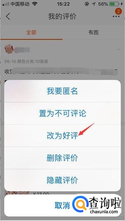 在评价里面找到你想要改为好评的评价,点击右上角的小圆点,接着点击改为好评。