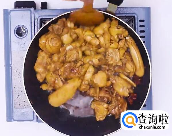 锅中加入老抽、生抽、八角、生姜,继续翻炒。