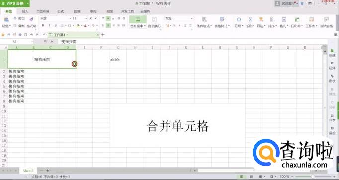 同样,选中我们的要合并的区域,如果选择的多大家可以选中开始的单元格,按住SHIFT键,再单击结束的单元格进行选择。