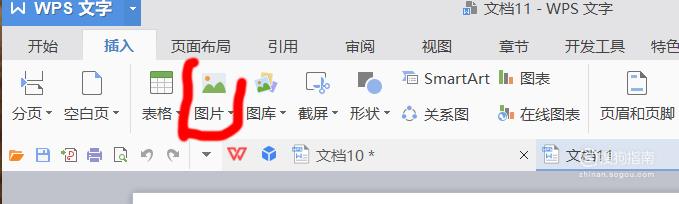 点击菜单栏插入,插入界面下点击图片。