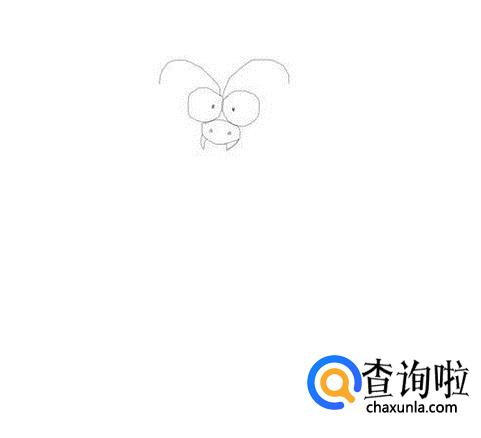 先画出螳螂的头部,然后在头部上画出螳螂的触角,并在头部的下面再画出螳螂的嘴巴和牙齿,如图所示: