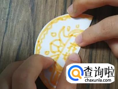 拿出另一张圆纸片,画成月饼的样子,中间是“花好月圆”字样。