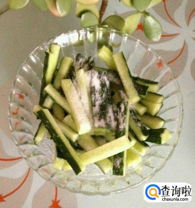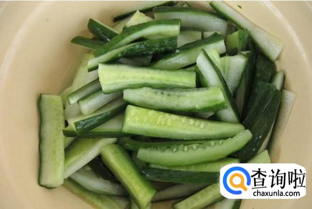 首先我们需要把黄瓜用清水清洗干净,然后把黄瓜切条,用盐腌制,这样子可以让黄瓜排出大量的水分。