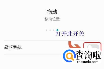 在跳转到的系统导航页面,我们可看到“悬浮导航”演示图了,点击进去以后将开关打开即可;
