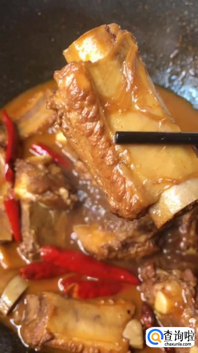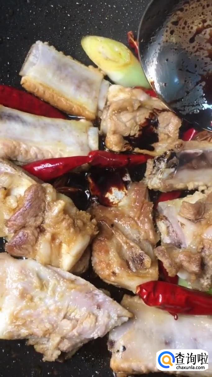 等到锅中的水份所剩无几,撒上葱花就可以出锅了。一道美味可口的红烧排骨就做好了,希望大家能够喜欢。
