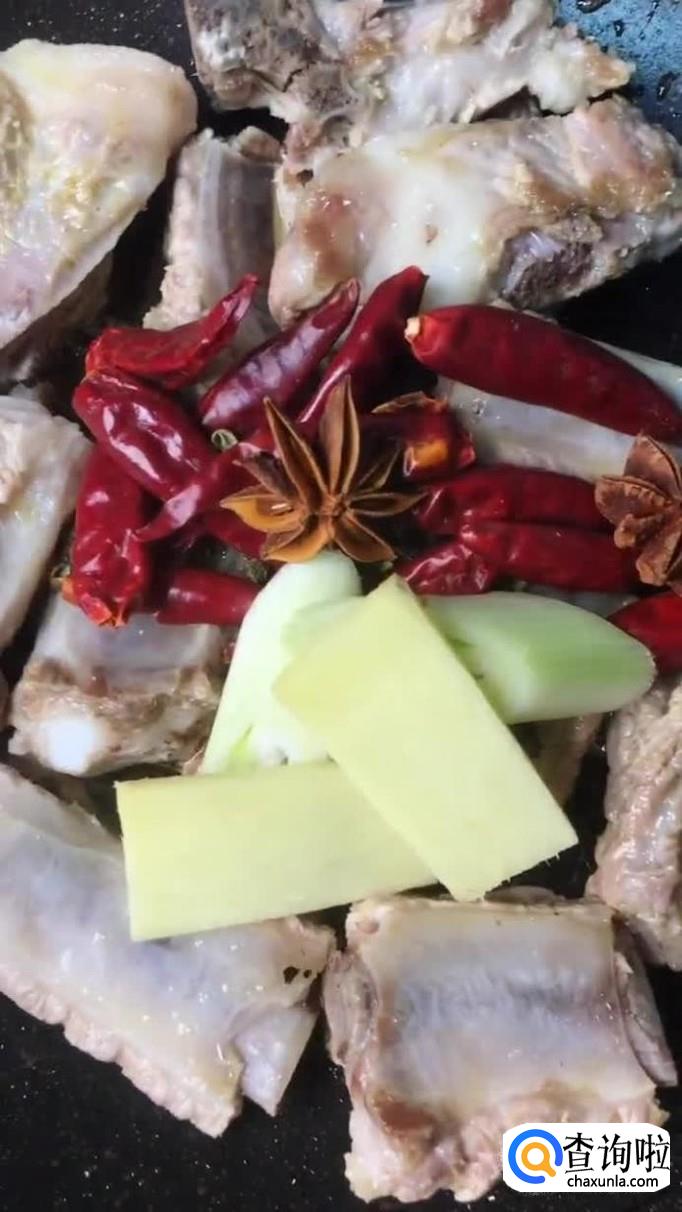 食材:排骨,料酒,八角,干辣椒,生姜,大蒜,生抽,蚝油,盐巴,味精,五香粉,香葱。