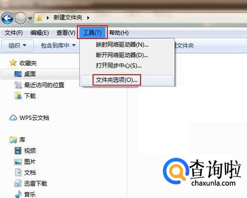 在上方的菜单栏上依次点击“工具”-“文件夹选项”选项。