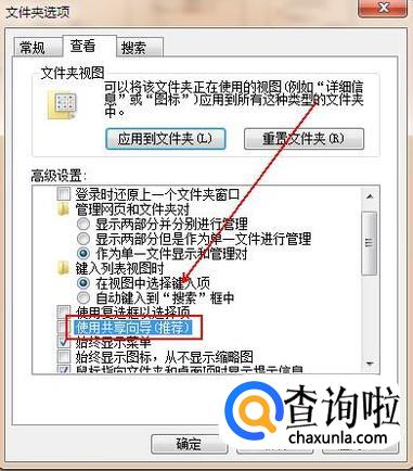 去除下方“使用共享向导(推荐)”的对勾并单击“确定”按钮即可。