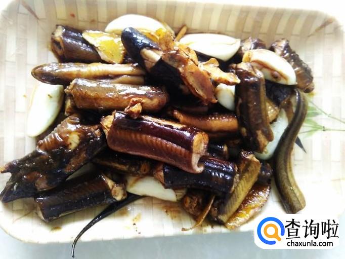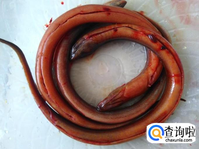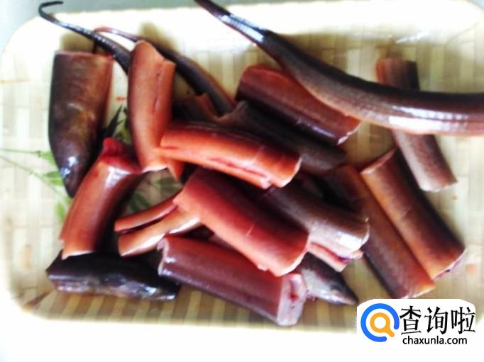 把黄鳝内脏清理干净,然后切成一段段。
