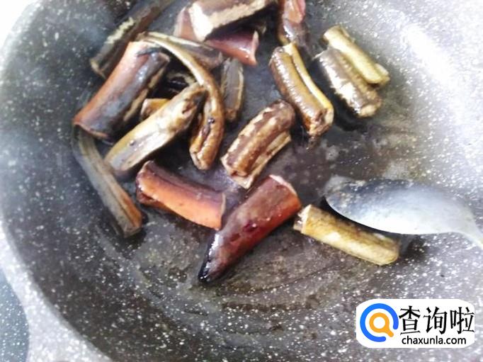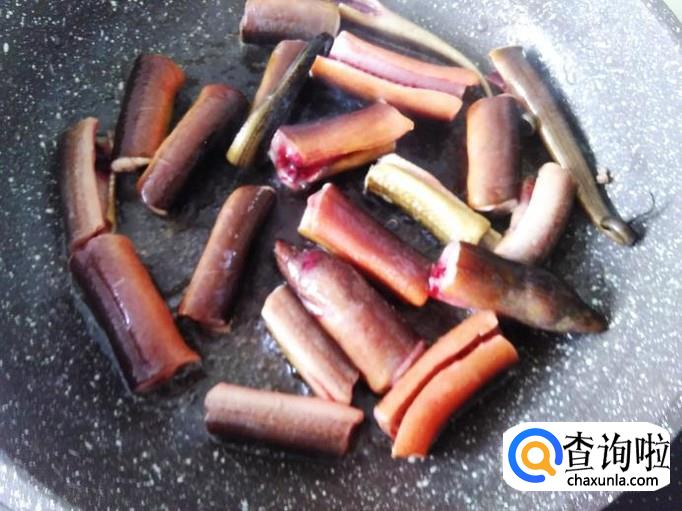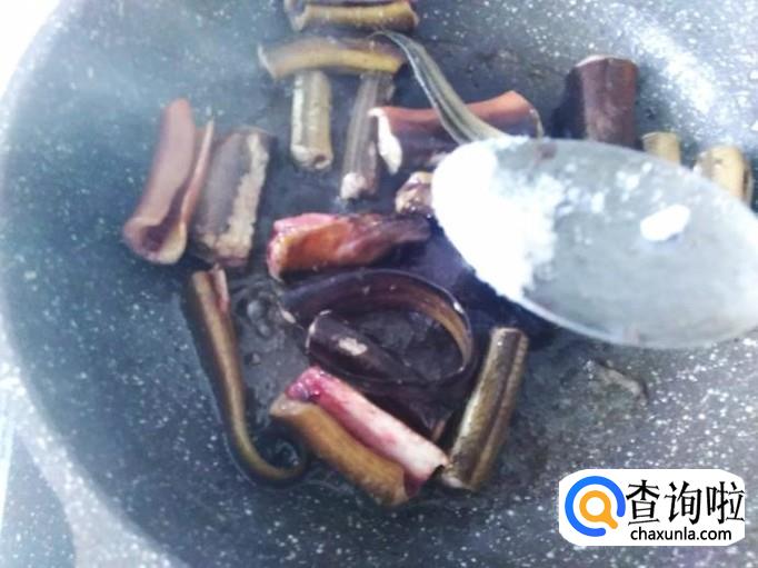 放黄鳝进去,然后加适量的盐用小火炸煎。