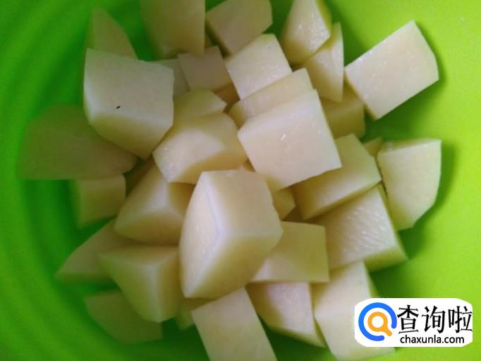 土豆去皮,切成小方块。