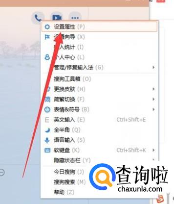 进入之后,将光标定在输入框位置,然后鼠标右击输入法,点击“设置属性”,如图所示。