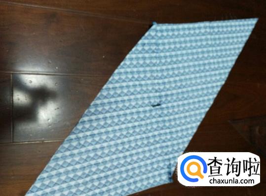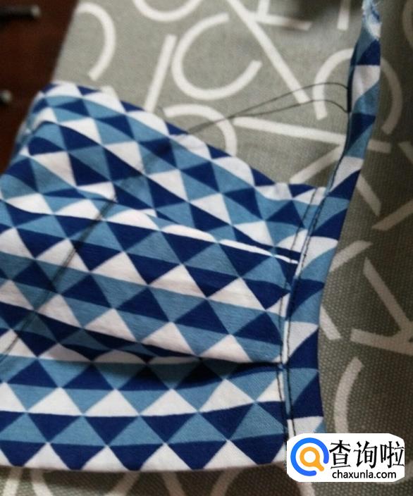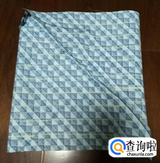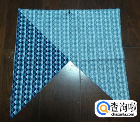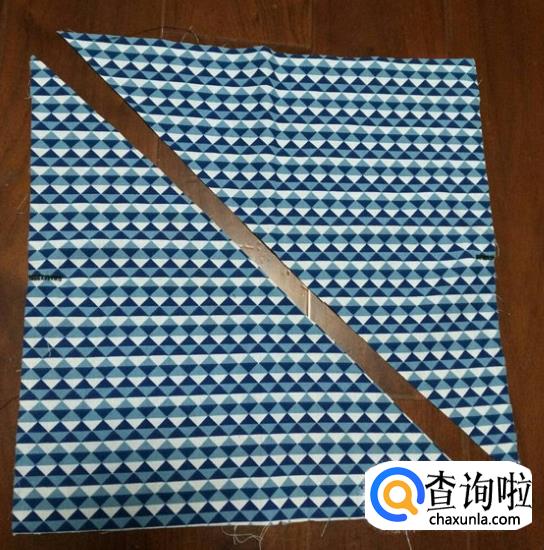 在宽度方向抓个折,车直线固定,两边都一样操作。制作包边条,用一块方形布,沿对角线剪开。正面相对,按图示在上面车直线连接在一起。展开后是这样。