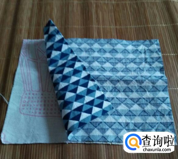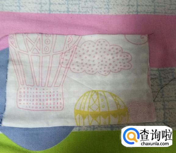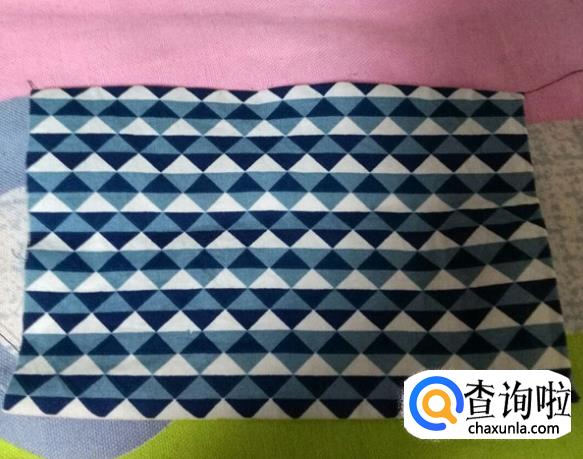 裁剪两块18×13的棉布,分别做正面和里面。两块儿布正面和正面相对放好。把表布和里布正面相对沿长18厘米的边车好。