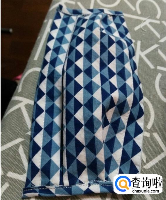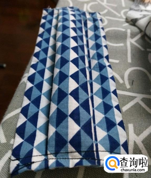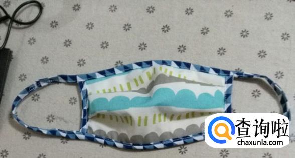 包好后剪去多余包边条,上下均与口罩主体一样长。这是两边包边后的图。用包边条包18厘米宽的两个边,注意这里直接用一条包边条围个圈包。两边留的长度根据自己的脸型尺寸,两边各留了18厘米长。口罩就完工了。