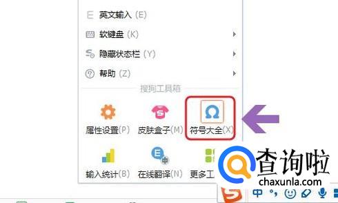 在网络上找到以后直接进行复制粘贴即可;另外依旧是通过搜狗输入法,我们点击状态栏最前面的搜狗logo,如下图所示...