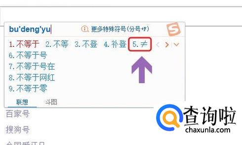 首先如果电脑里安装了搜狗输入法,那么直接在输入框输入文字“不等于”三个字,即可在备选栏看到此符号了,如下图...