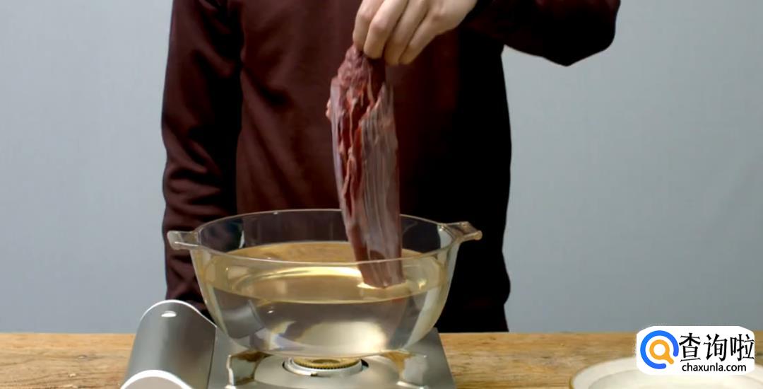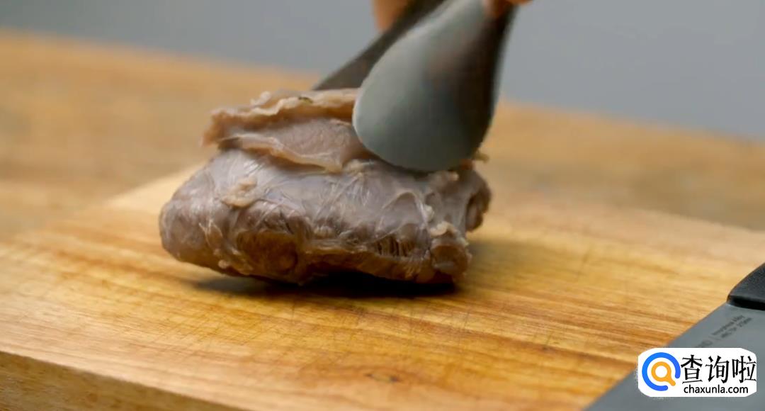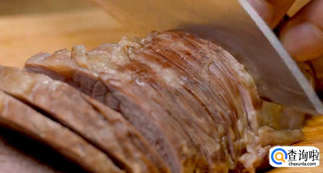 小火将腱子肉煮软之后,捞出切片。