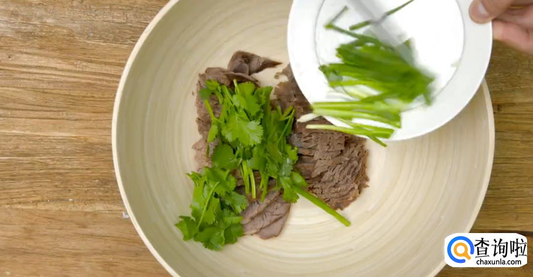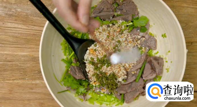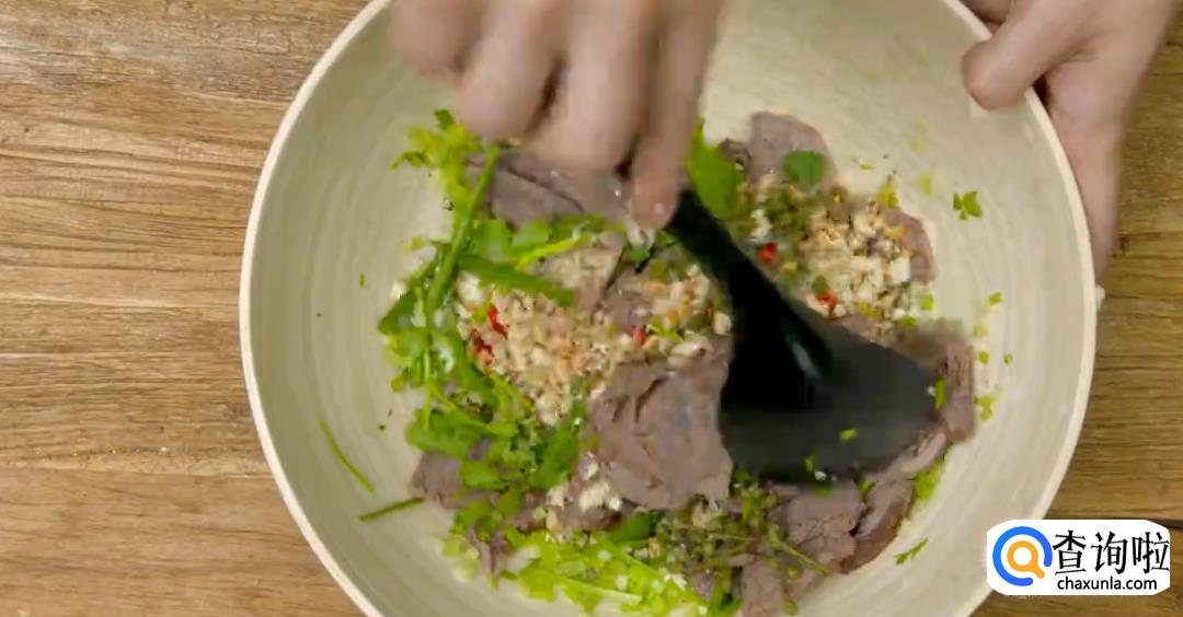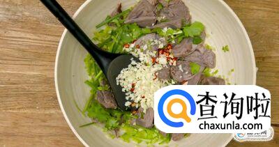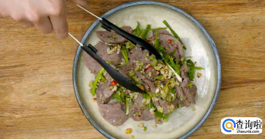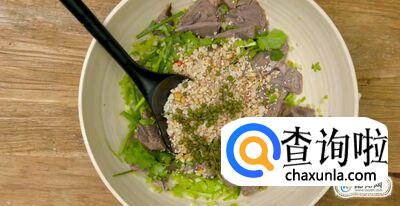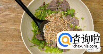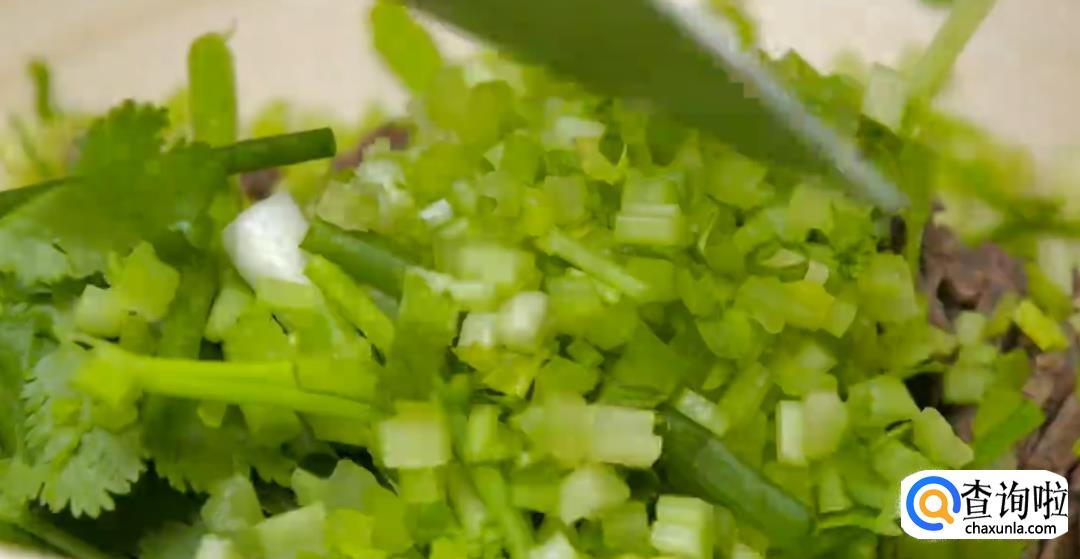 凉拌的时候倒入香菜节,葱段,芹菜,然后将其搅拌均匀。