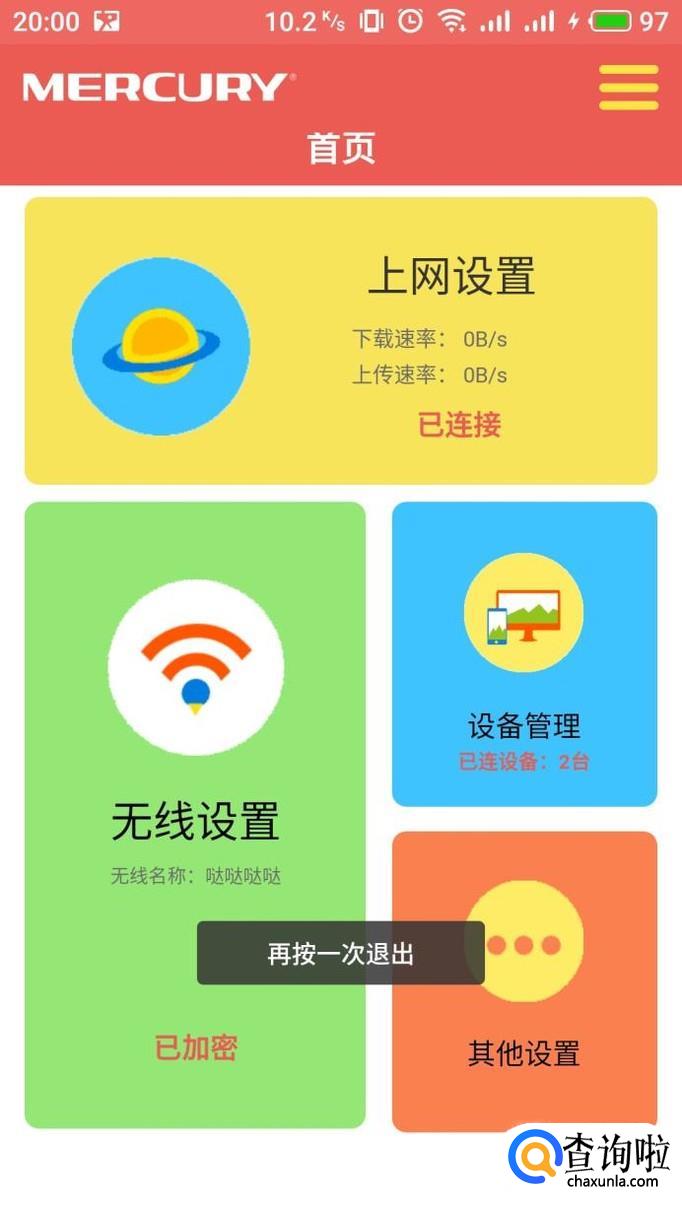 以水星路由APP为例,在应用市场中下载安装水星路由,安装完成之后点击进入,在首页即可看到相应的选项。