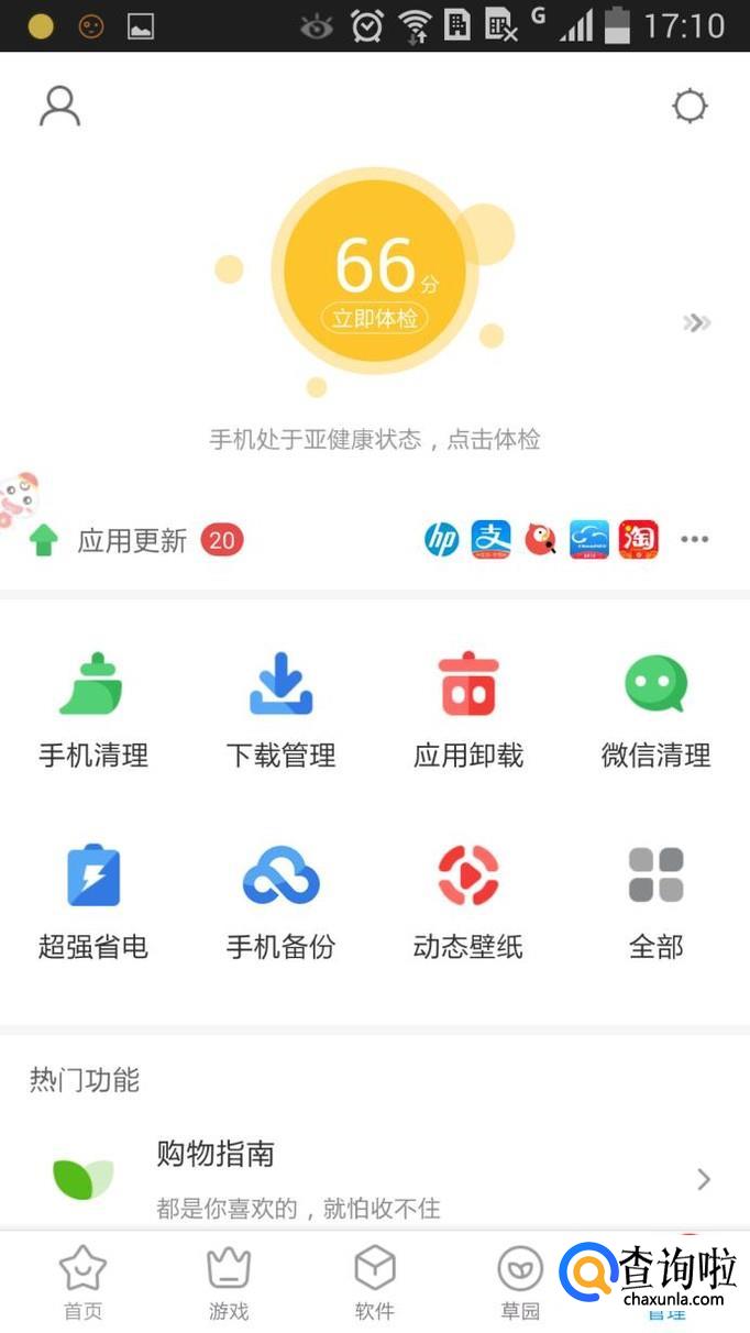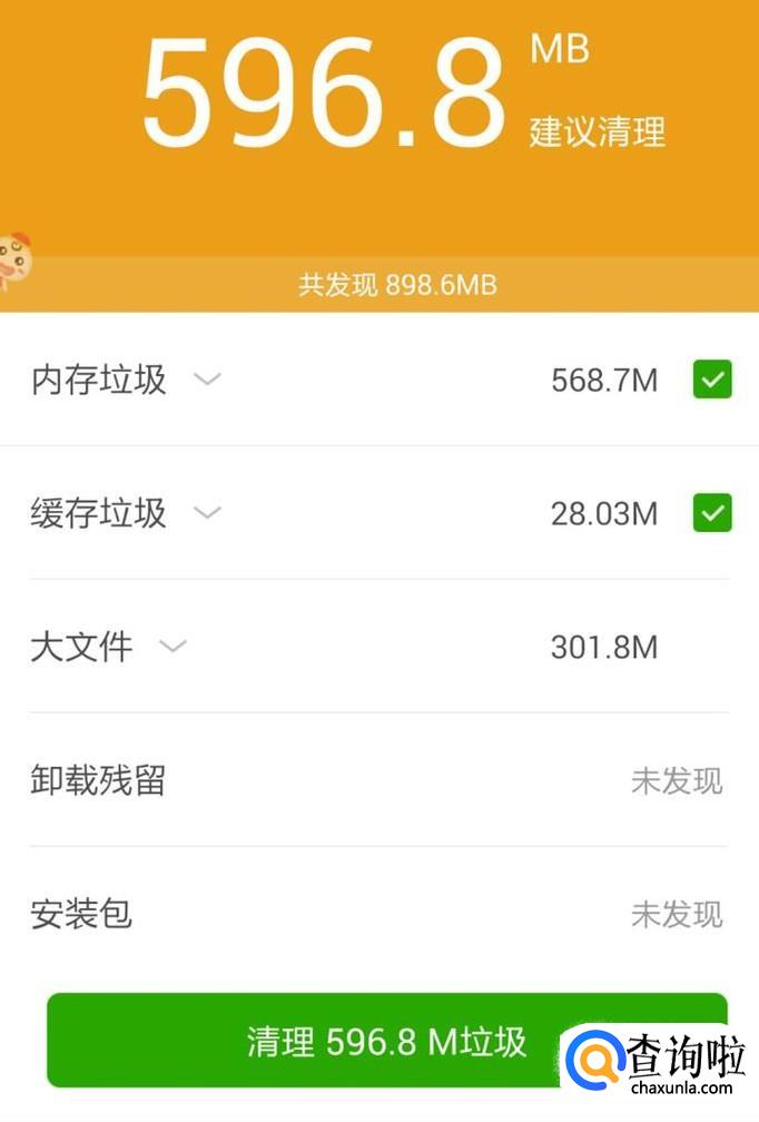 在第一步的功能界面选“手机清理”,会开始清理手机里的垃圾。