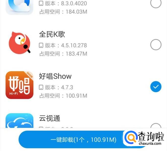 在这个界面有几个优化项,先点“应用卸载”,会显示安装的所有软件,勾选要卸载的软件,点下面的“一键卸载”。