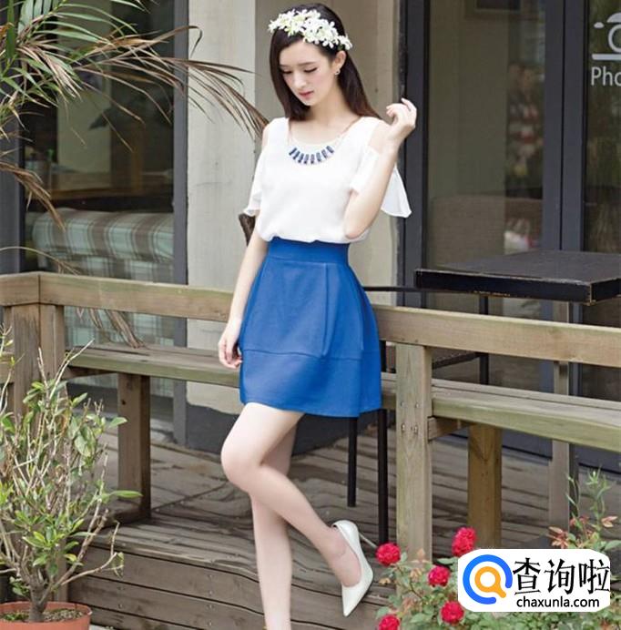 娇小女生可以选择浅色短袖T恤,下面搭配亮色A字款短裙,既可以拉长身材比例,使腿部显得修长,又娇小甜美。