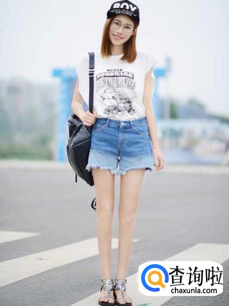 牛仔短裤是经久不衰的时尚单品,上面随意搭配短袖T恤,既简单随性,又时尚个性;