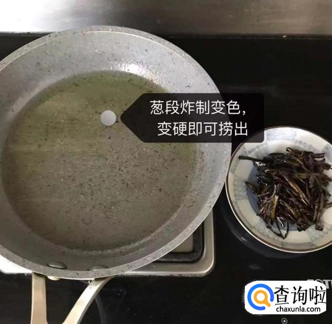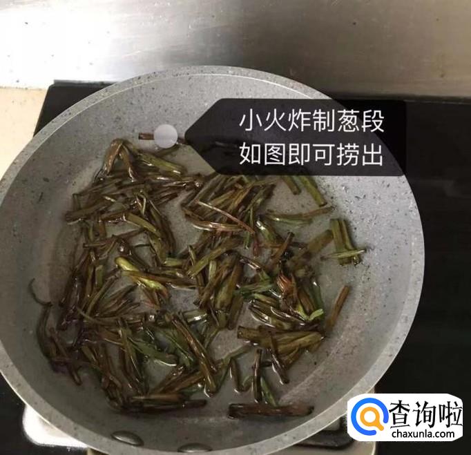 接着开小火炸葱段,如下图所示。