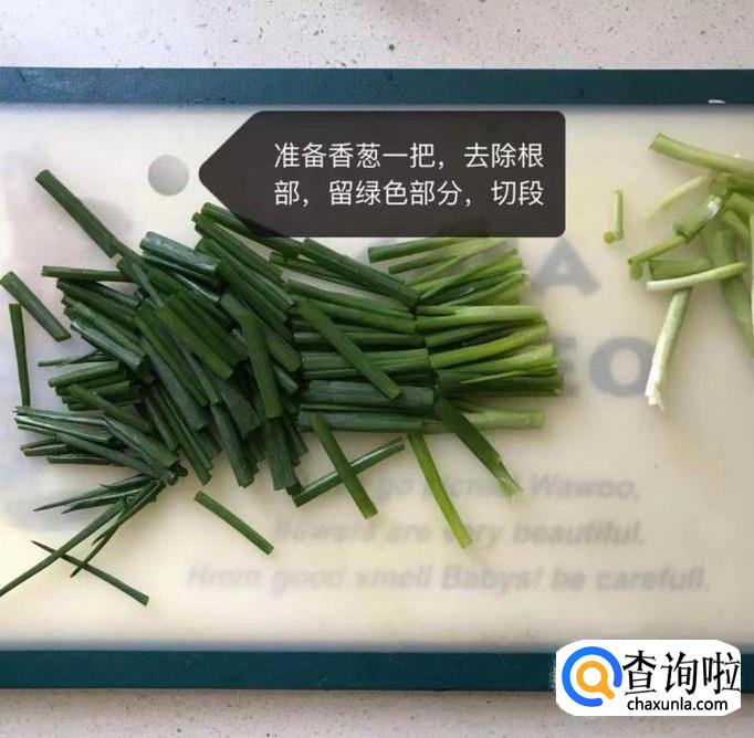 首先将香葱去除根部,留绿色部分切断,如下图所示。